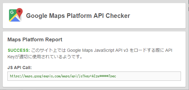 そのため、制作上のデータに問題がないことを証明する方法として、まずは自身で取得したAPIキーを設定し、正しく表示されることを実際に示すのが有効です。