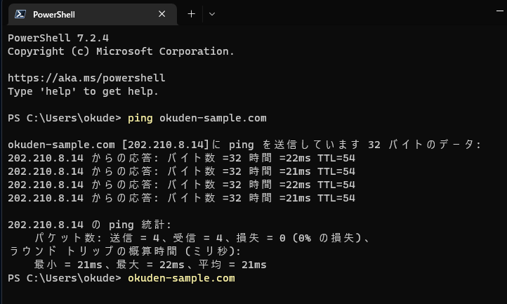ping ドメイン名
