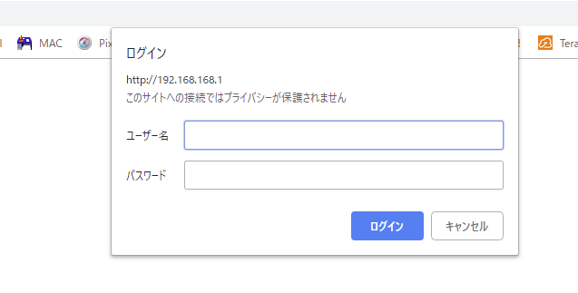 もし設定書類が無い場合は、下記の一般的な初期ユーザー名とパスワードの組み合わせをお試しください。 例:ユーザー名:user(admin) パスワード:admin