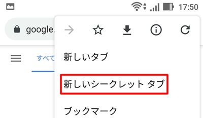 表示されるメニューから「新しいシークレット タブ」をクリック。
