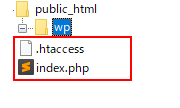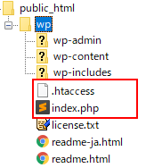 この時/wp/のindex.phpと.htaccessはそのまま残っていて、/にindex.phpと.htaccess が追加されたカタチになります。