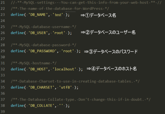 この中にWordPressの設定情報が記載されているので、下記の4つの項目をメモしておいてください。